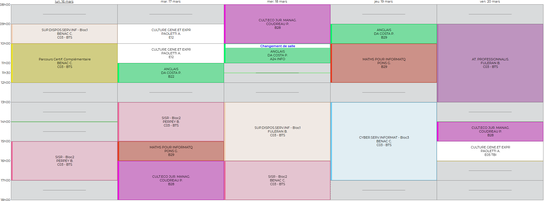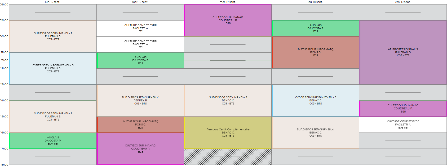 Voici un exemple d’Emploi du Temps que l’on peut retrouver en BTS SIO (1er année/2nd année) :